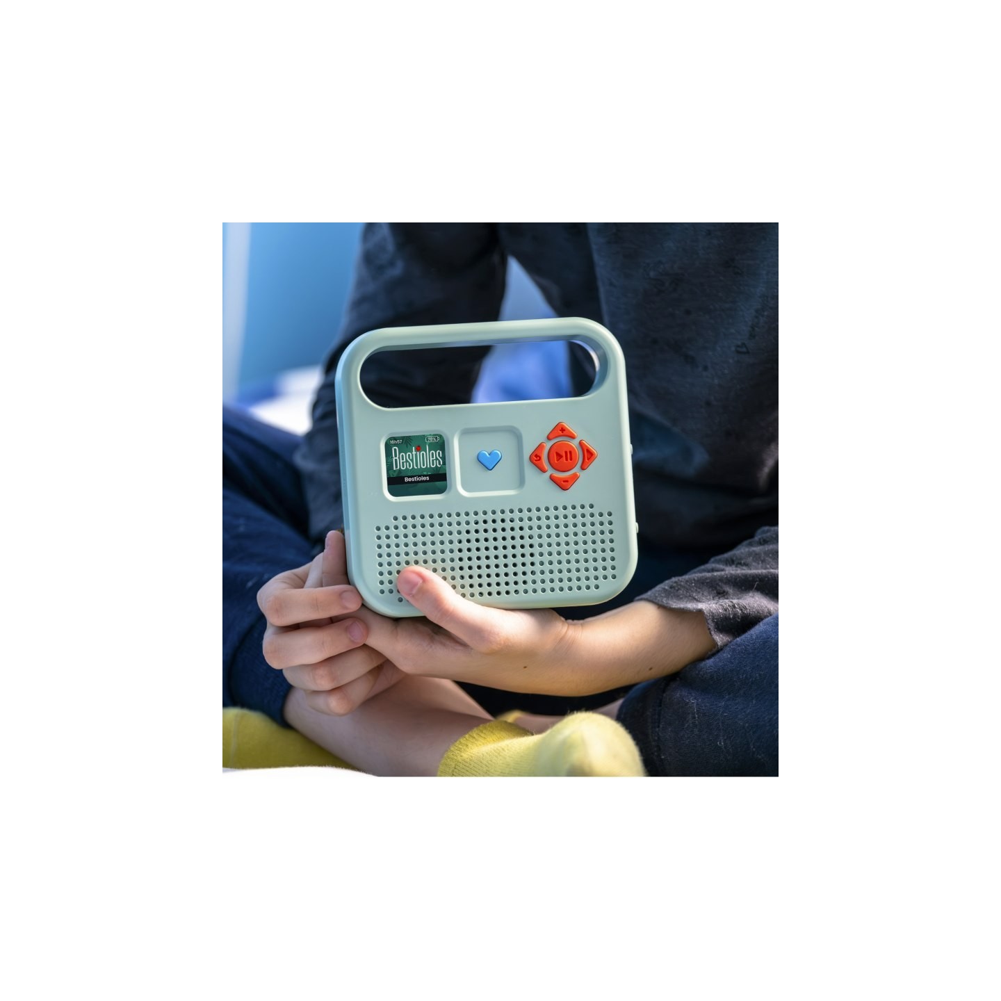 L’enceinte Merlin est conçue spécialement pour les enfants de 3 à 12 ans — un compagnon idéal pour éveiller leur imaginaire. Elle offre une écoute sans ondes Wi-Fi et sans écran, pour permettre aux enfants de profiter d’histoires, de contes, de comptines, de documentaires ou de musiques en toute sérénité.