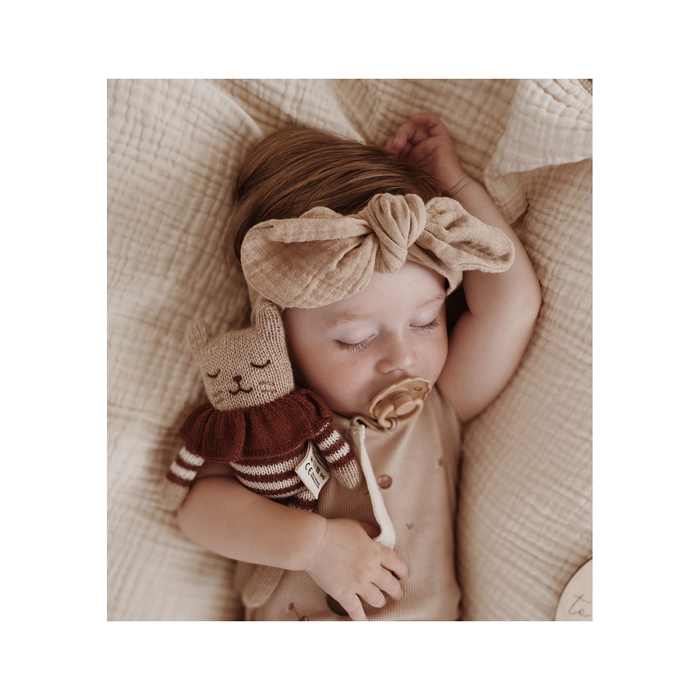Taille adaptée aux petites mains — environ 22-23 cm, ce qui en fait un doudou parfait pour les nouveau-nés et les nourrissons