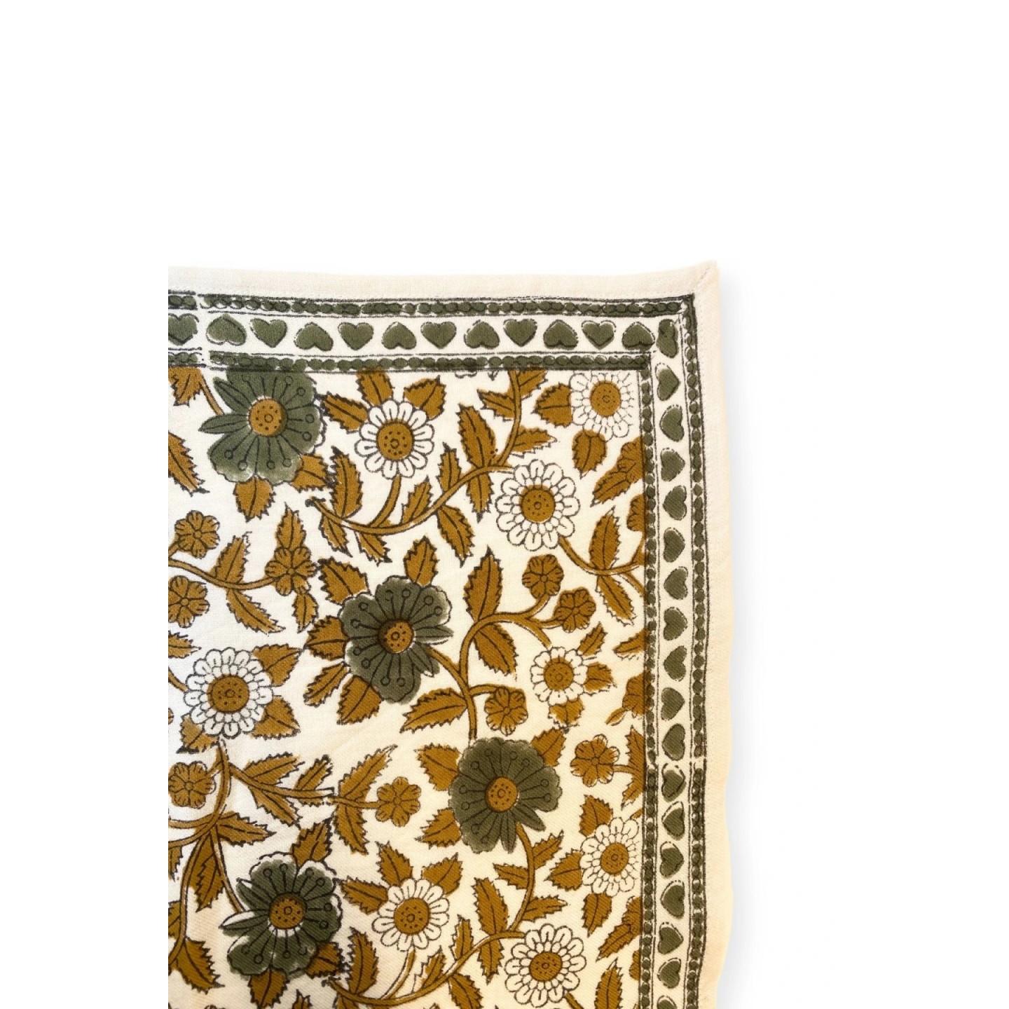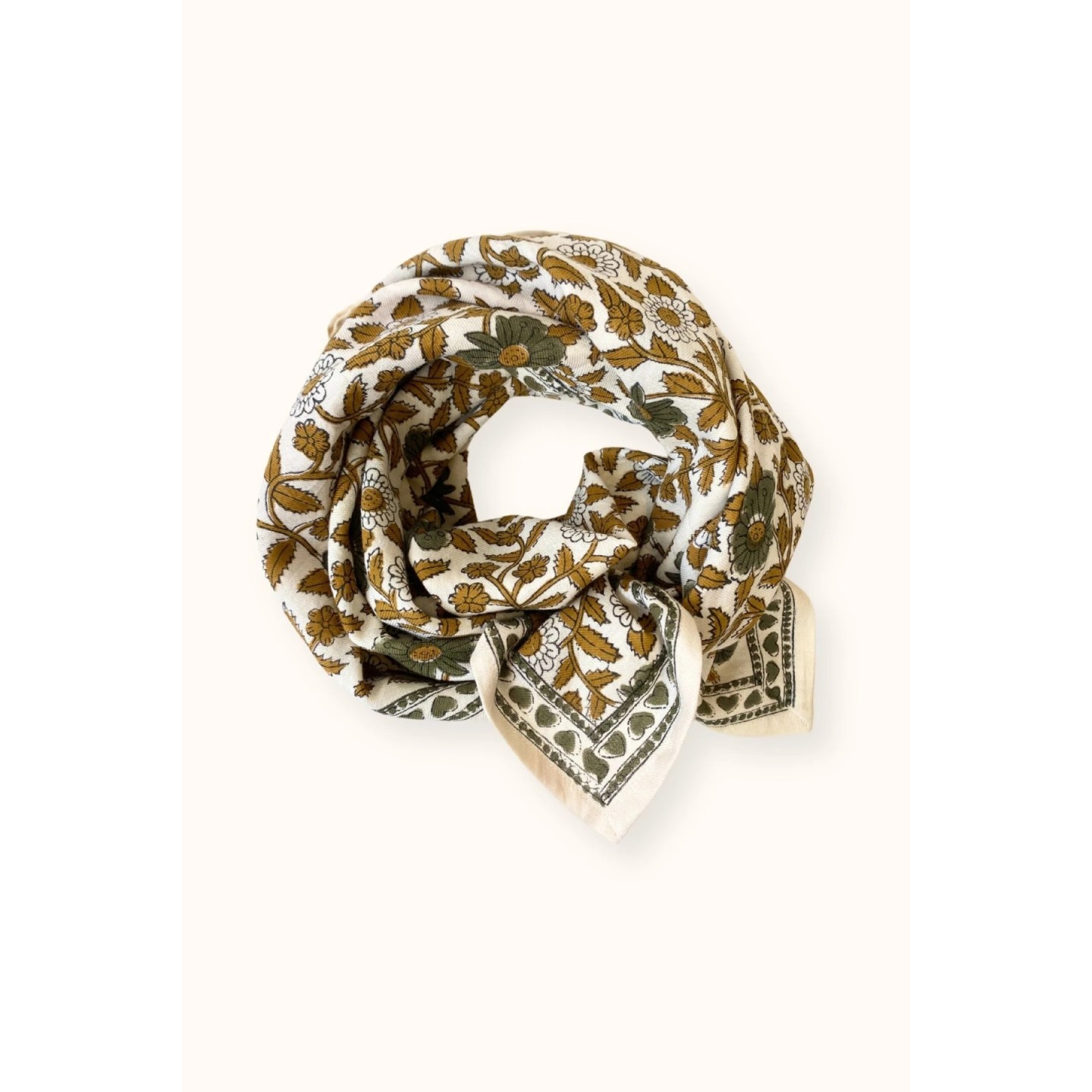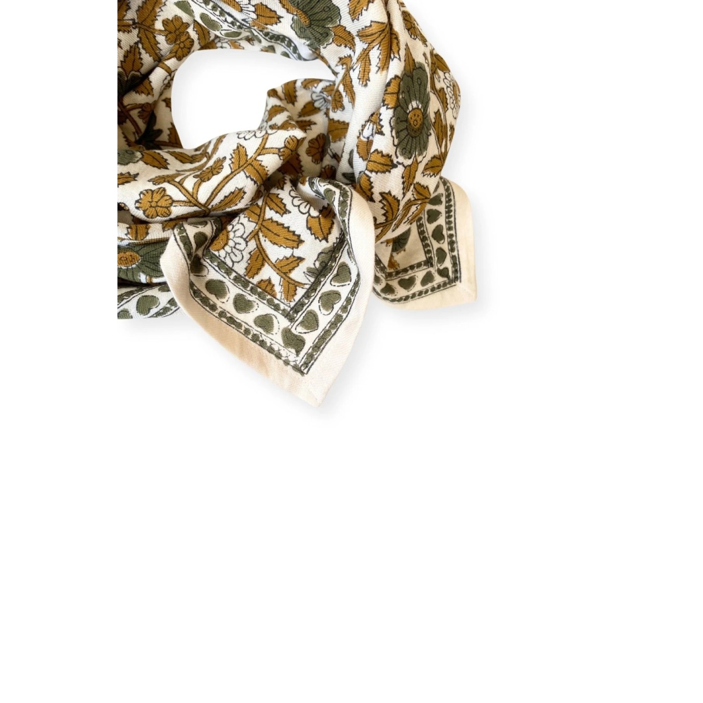 Grand foulard coton fleuri camel/kaki