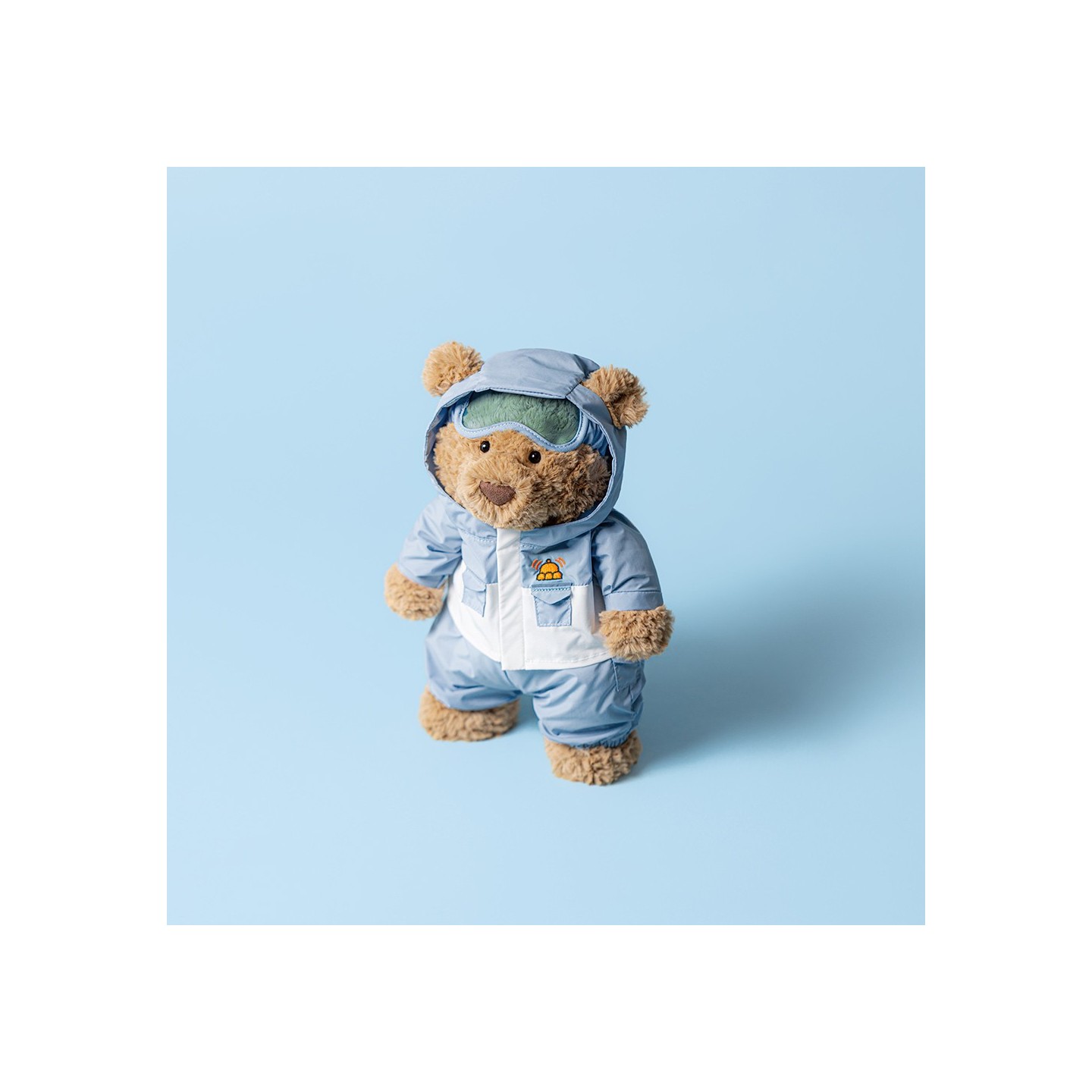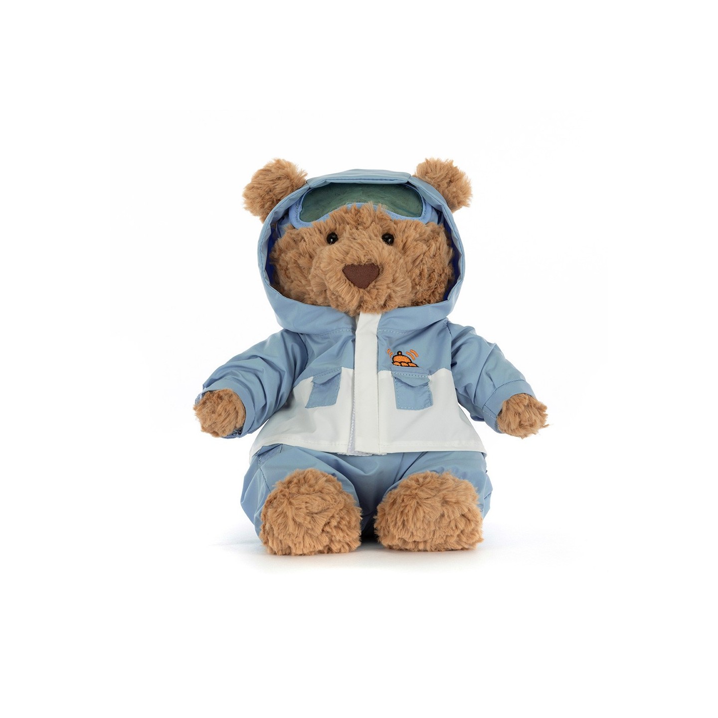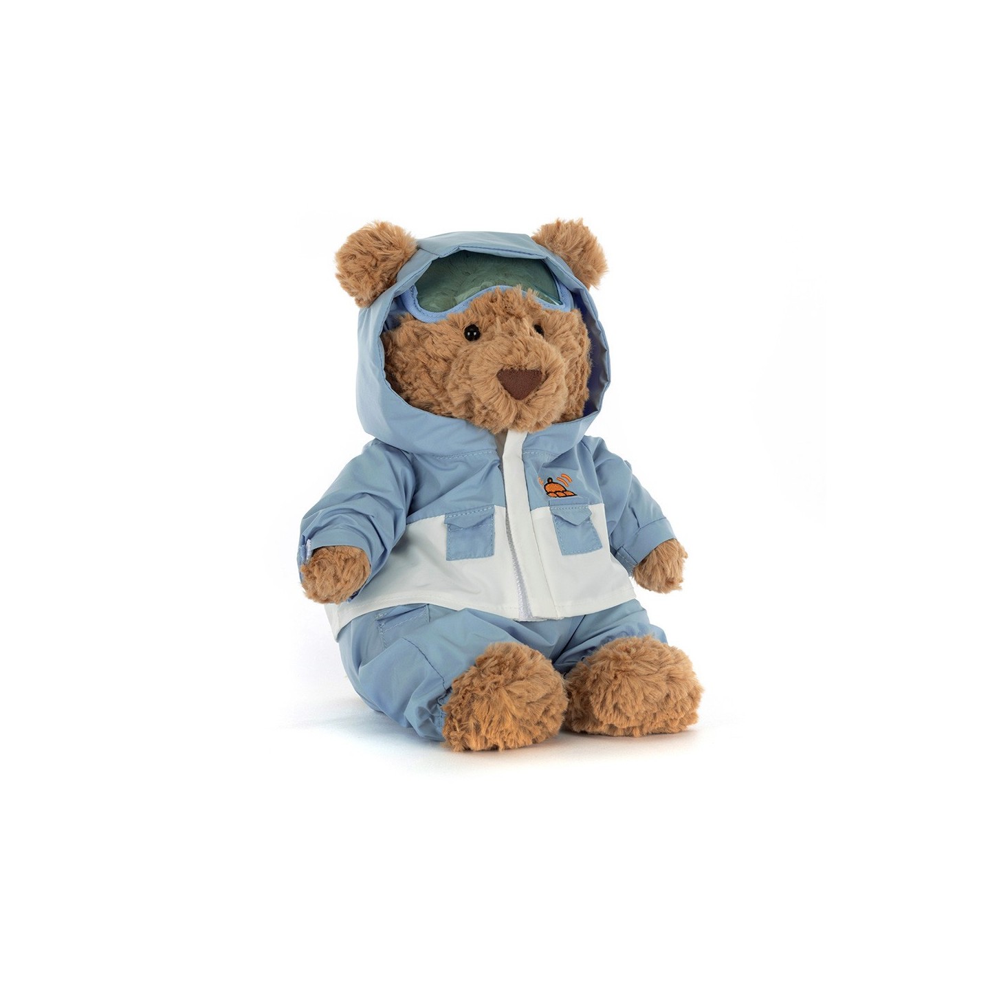 Quand l’hiver arrive, Jellycat sort des sentiers balisés… et voici Bartholomew en combinaison de neige !