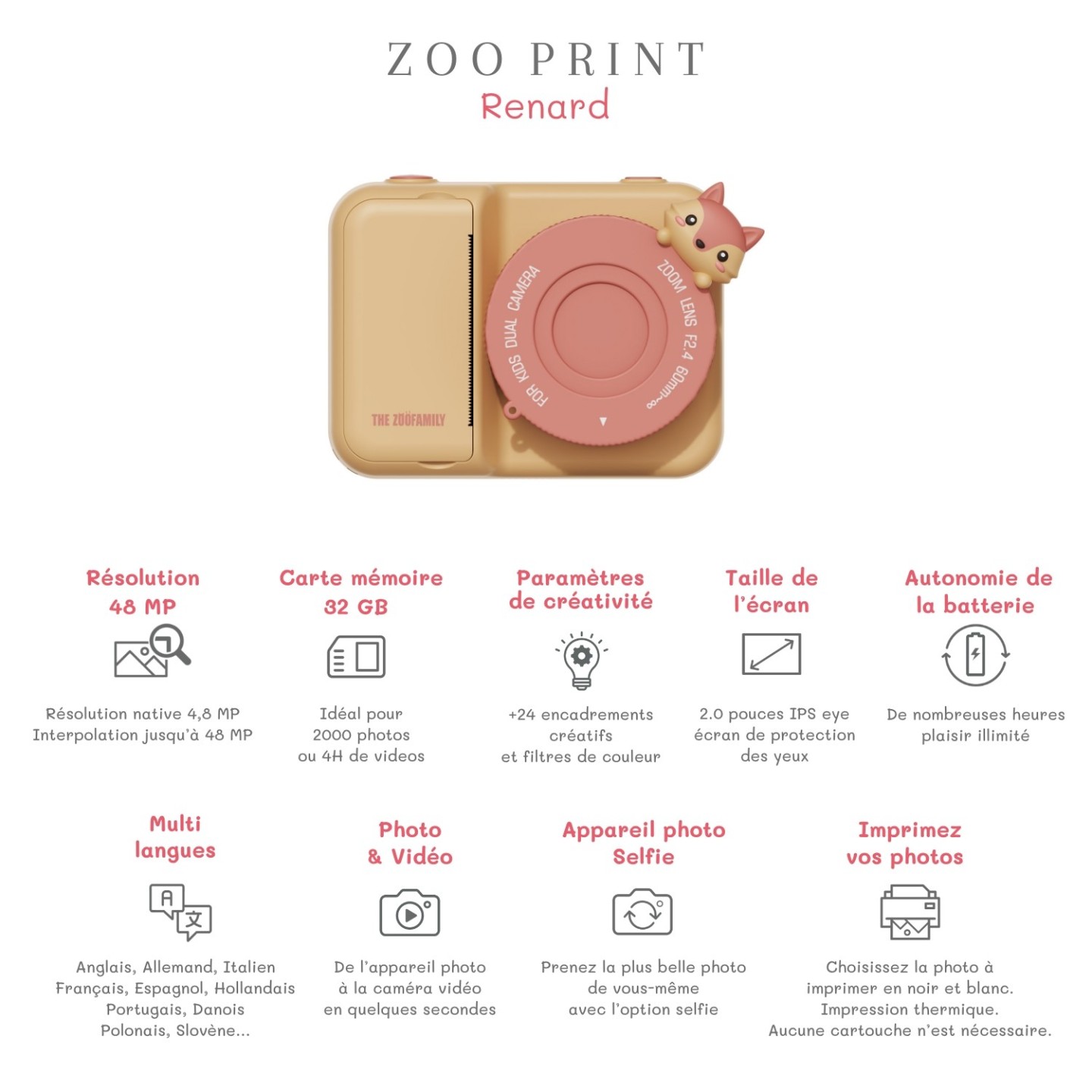 Appareil photo instantané thermique renard