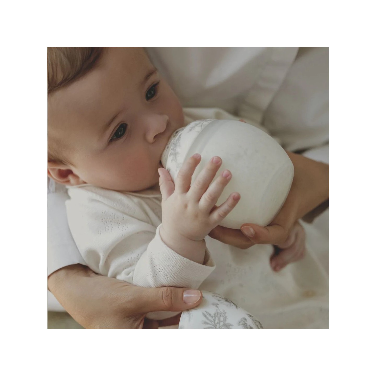 La tétine est équipée d'un système anti colique et réduit l'absorption d'air par le bébé. Sa forme physiologique, adaptée à la cavité buccale, a été développée pour offrir des sensations proches de celles du sein de la maman.