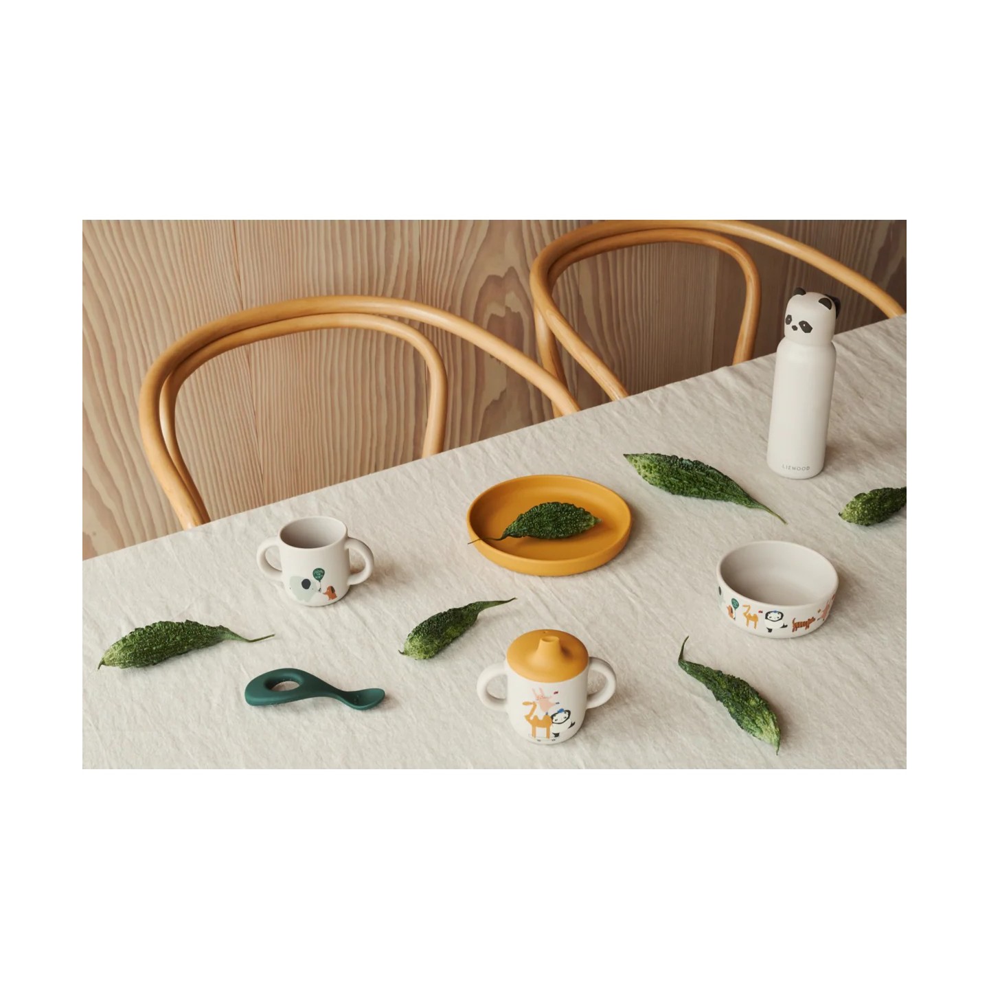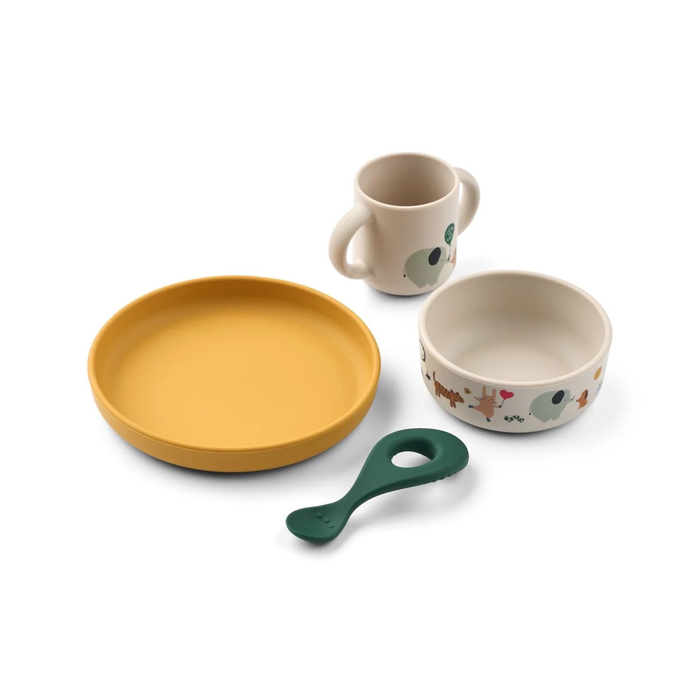 Le Liewood Vivi Set « Around the World » est un ensemble repas 4 pièces parfait pour les petites mains : un gobelet, un bol, une assiette et une cuillère. Conçu en silicone durable et incassable, il est idéal pour les débuts de l’alimentation solide ou des purées. Le motif « Around the World » ajoute une touche ludique et élégante, tandis que le set est compatible lave-vaisselle pour un entretien facile. Excellent choix pour accompagner little Simone dans ses repas, avec sécurité, style et autonomie.