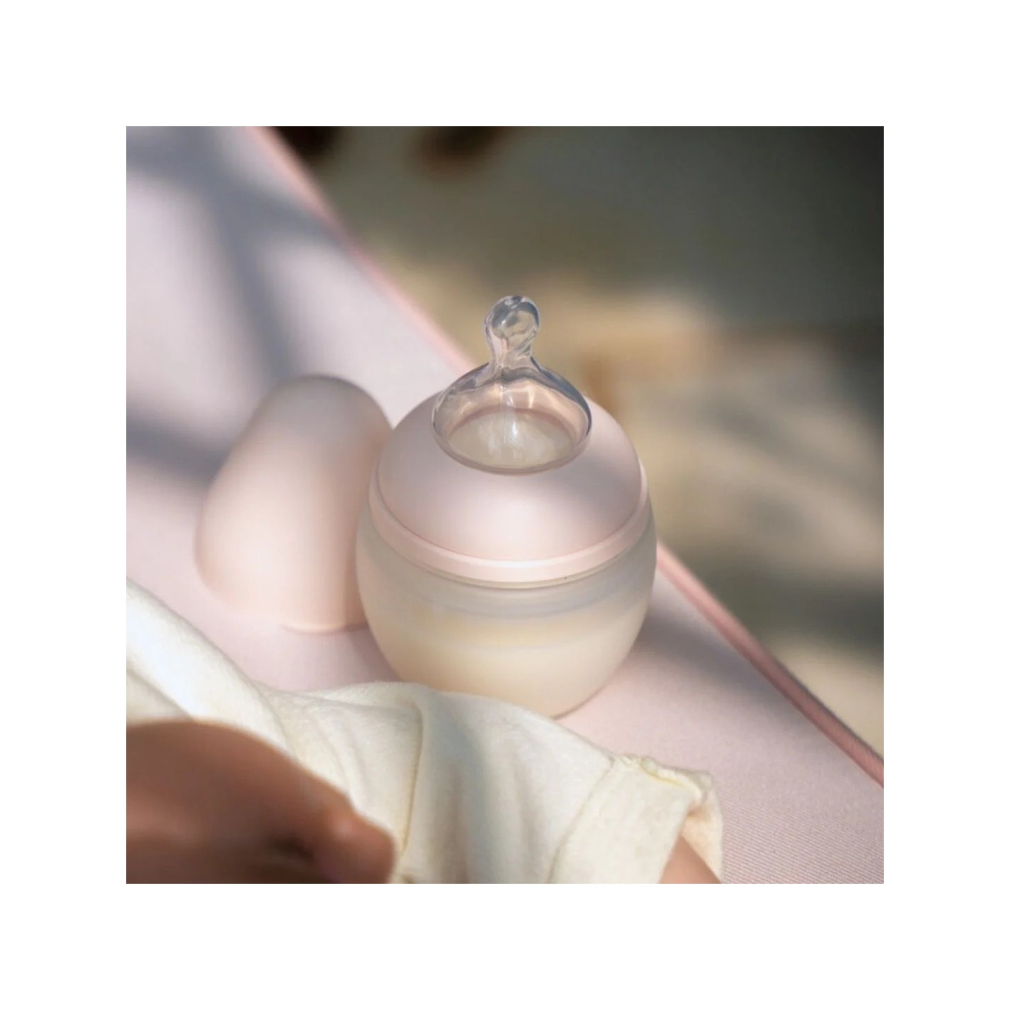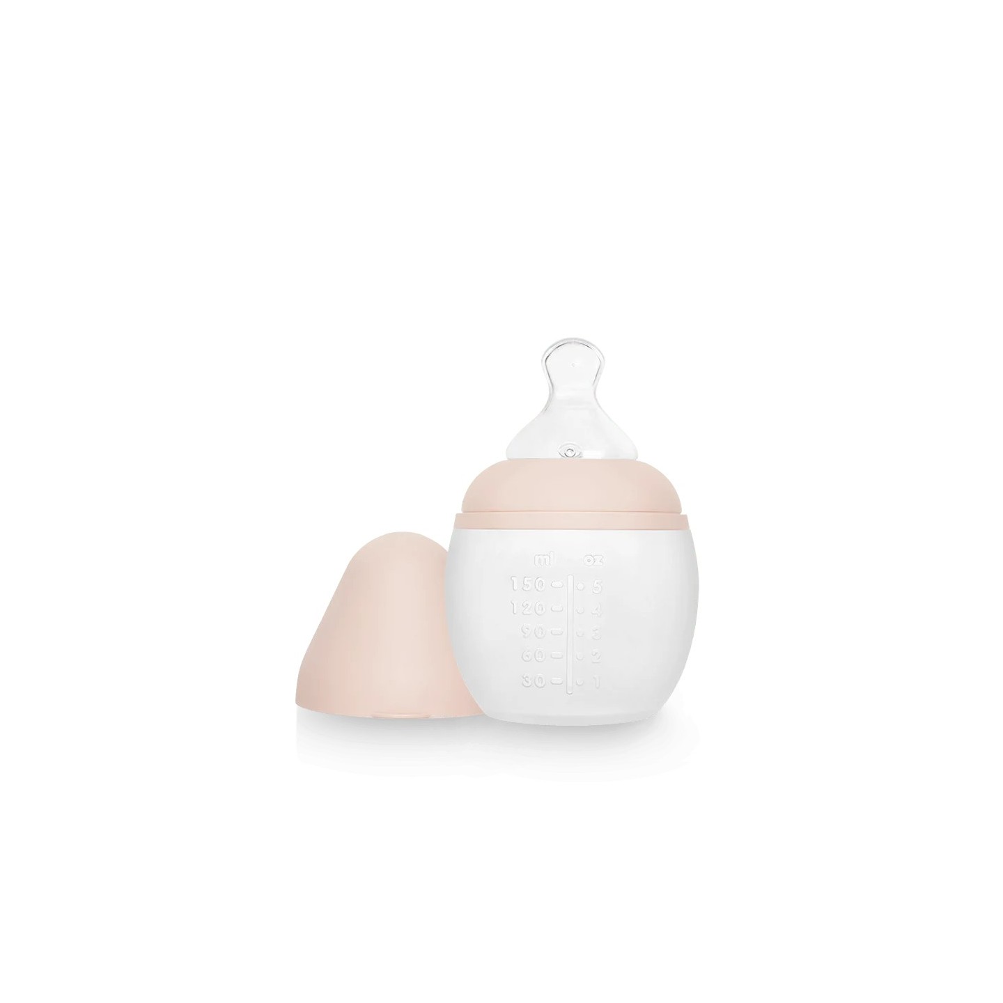 Les Biberons Elhée sont en silicone et sont dotés d'un principe unique et ingénieux: le lait n'entre jamais en contact avec des matériaux autres que ceux de la bouteille ou de la tétine en silicone.