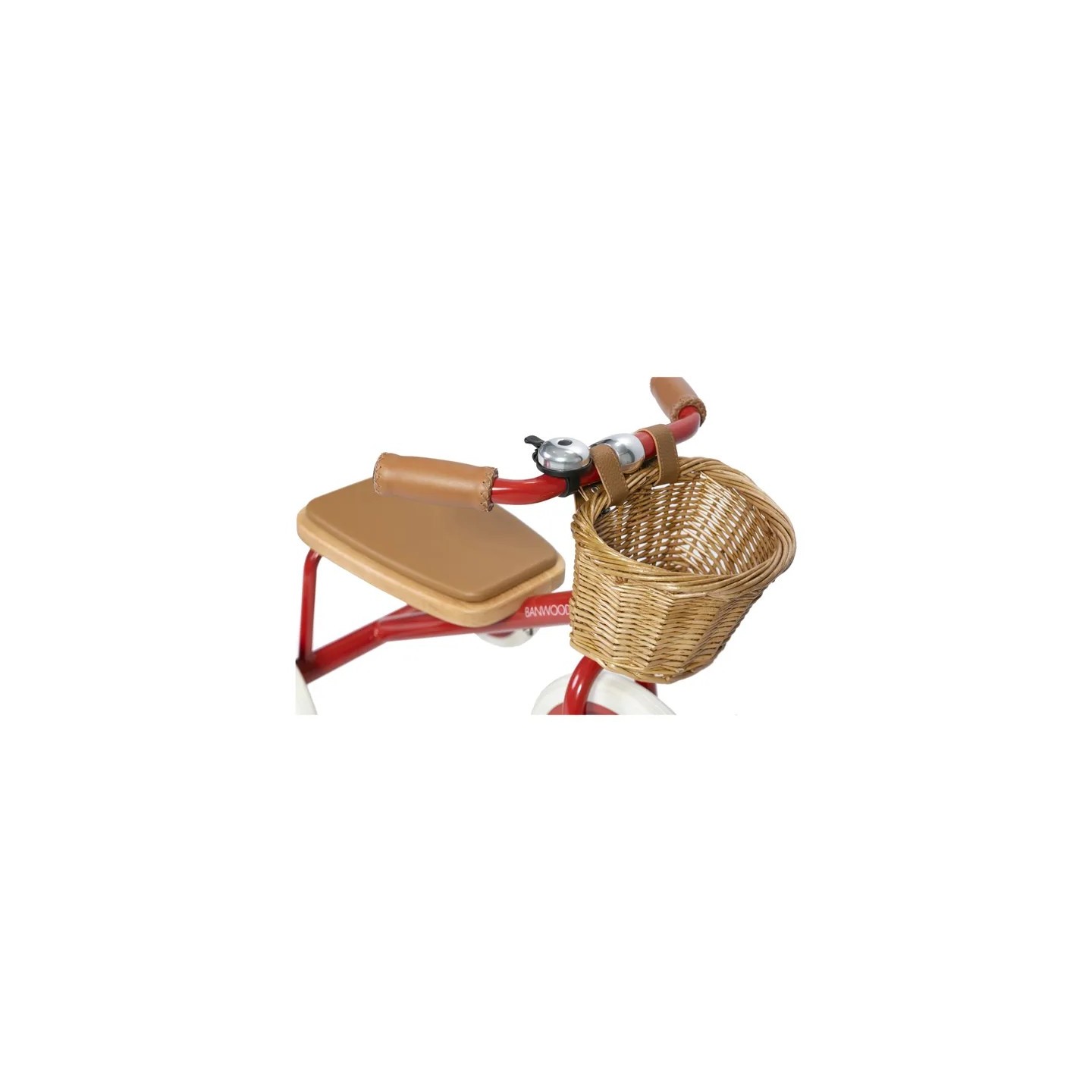 Le tricycle Banwood Trike en couleur rouge intense combine un design vintage élégant et des matériaux haut de gamme pour accompagner les enfants dans leurs premières balades : cadre en acier avec finition colorée, siège en chêne légèrement rembourré, pédales en bois de chêne, poignées en cuir vegan, roues en caoutchouc. Il est équipé d’un panier en osier à l’avant pour que votre enfant puisse emporter son doudou ou ses petits trésors.