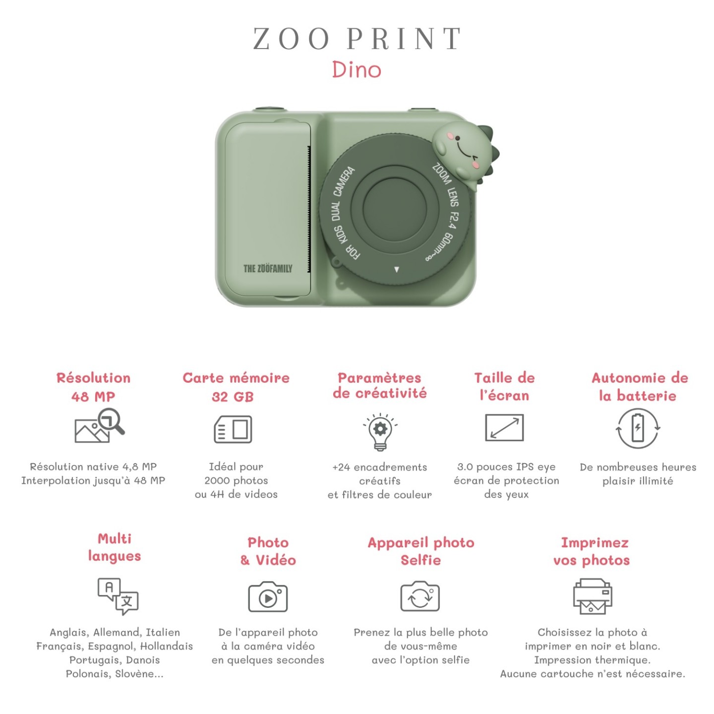 Outre son apparence fun et son ergonomie étudiée, la technologie de transfert thermique lui permettra d'imprimer instantanément ou de stocker ses meilleurs souvenirs pour les sortir sur papier plus tard après les avoir visualisé sur l'écran couleur 3 pouces. Le mode selfie sera aussi très apprécié ainsi que la vidéo