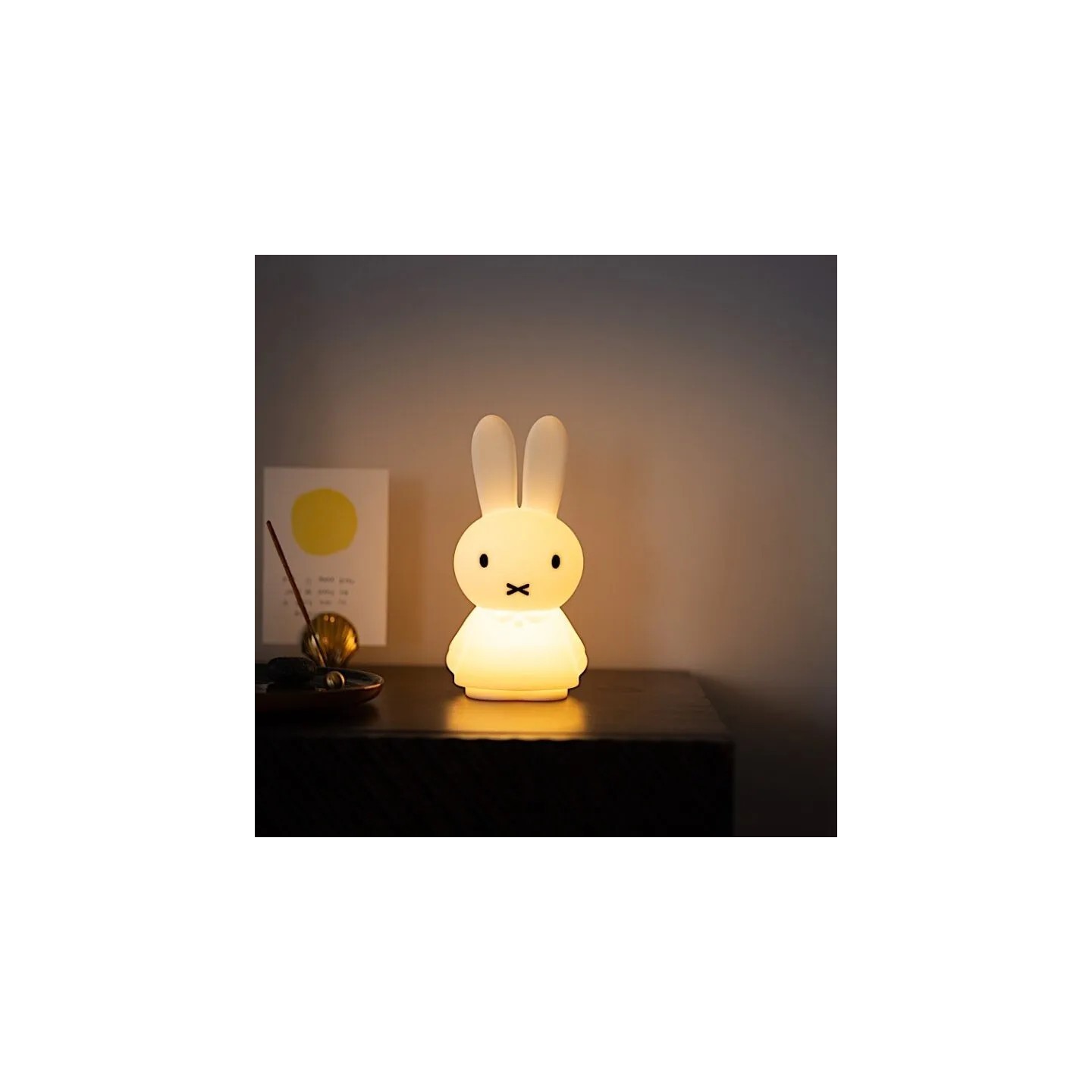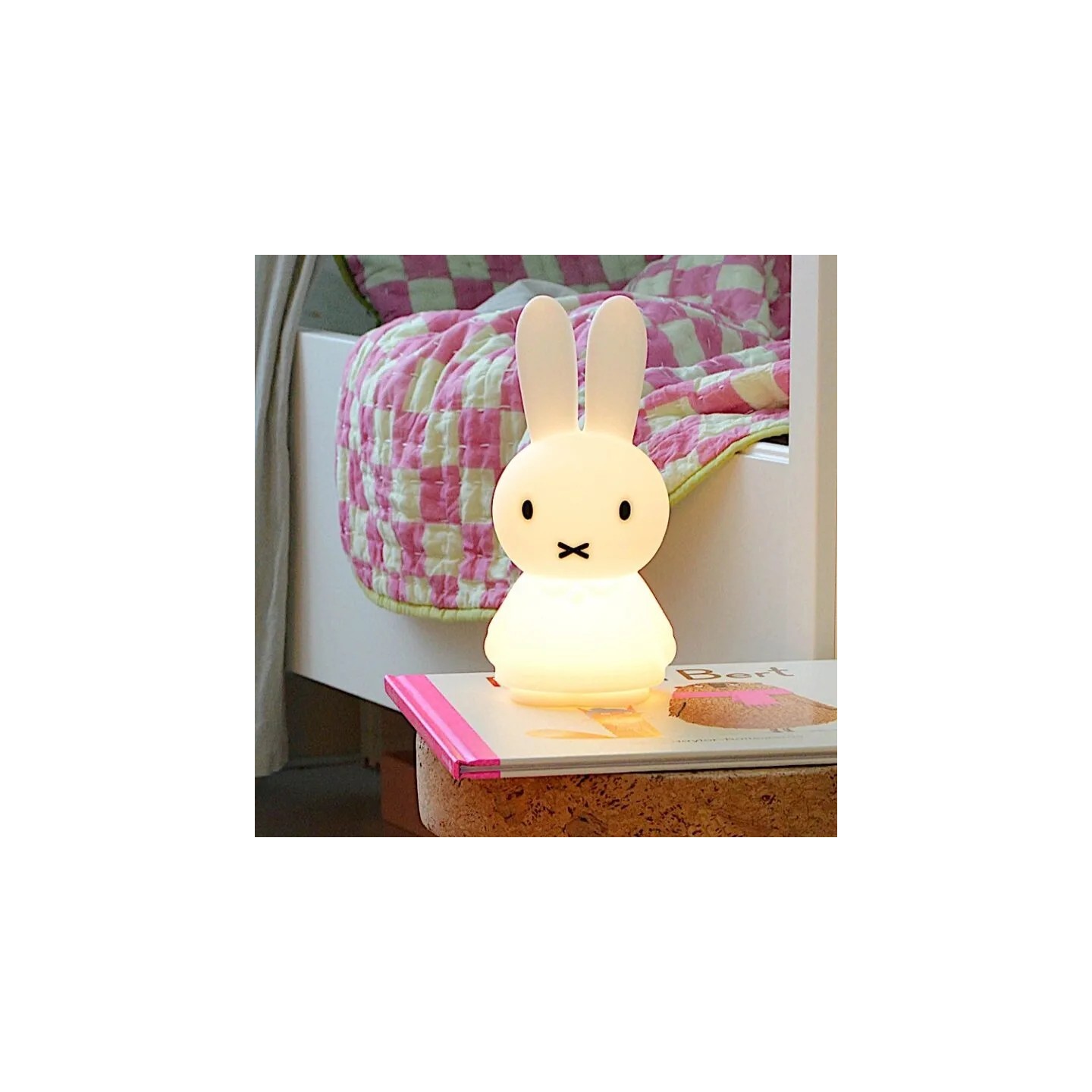 Apportez une touche de douceur et de design scandinave à la chambre de votre enfant avec la veilleuse Miffy Shines. Conçue en silicone souple et sans BPA, cette lampe rechargeable offre une lumière apaisante, idéale pour les moments de coucher. Tactile, elle permet de régler l'intensité lumineuse en toute simplicité. Miffy Shines et ses 23 cm de haut est la version mini de My First Light