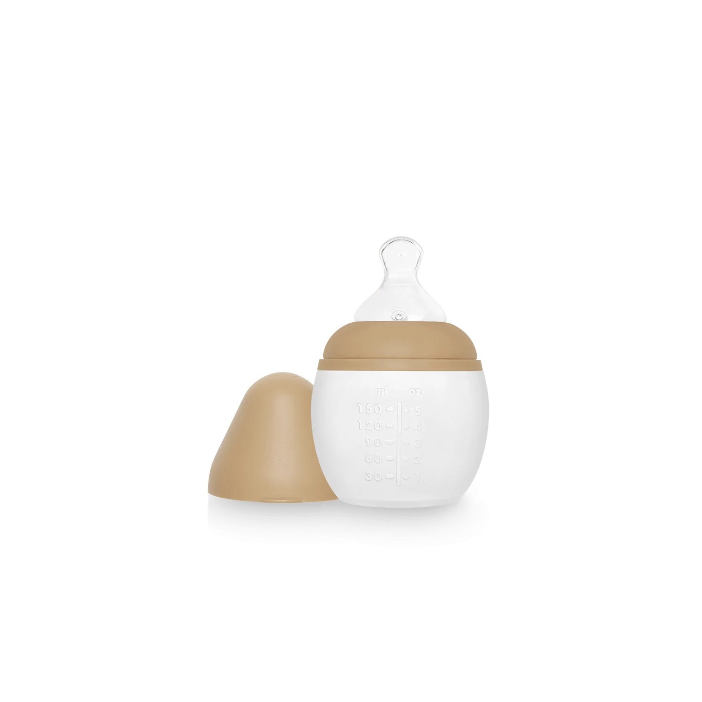 Les Biberons Elhée sont en silicone et sont dotés d'un principe unique et ingénieux: le lait n'entre jamais en contact avec des matériaux autres que ceux de la bouteille ou de la tétine en silicone.