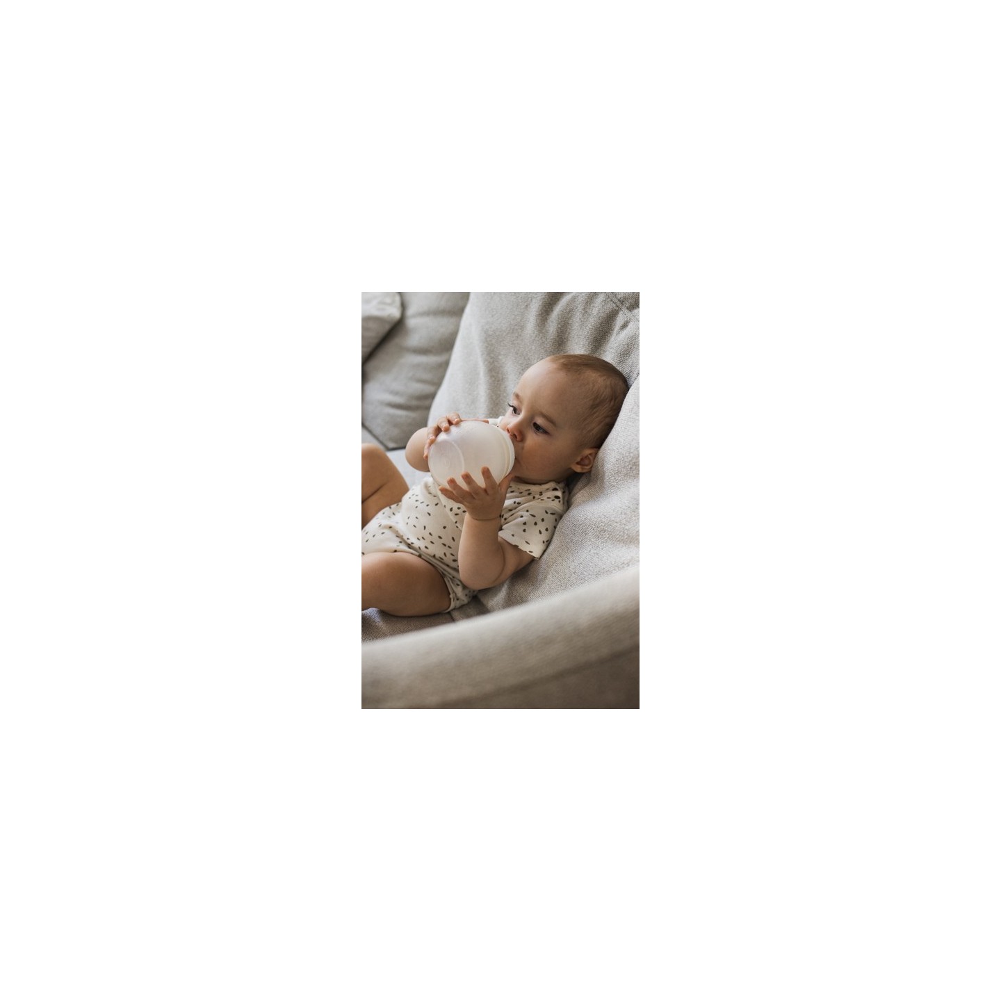 • Biberon évolutif qui se transforme en petit pot grâce à l'opercule fourni dans la boîte du biberon puis en tasse d'apprentissage avec les becs de succion (vendus séparément).